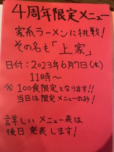 当日は、4周年記念として、限定メニューを提供いたします!!