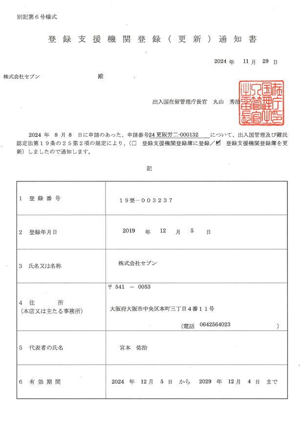 株式会社セブンは、この度「登録支援機関」を更新いたしました。
